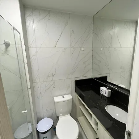 Flat Na Praia includes a balcony with climate control for utmost comfort. A highlight of this property for guests is the presence of bath sheets in the bathroom. Additionally, you'll find a separate toilet and a shower.